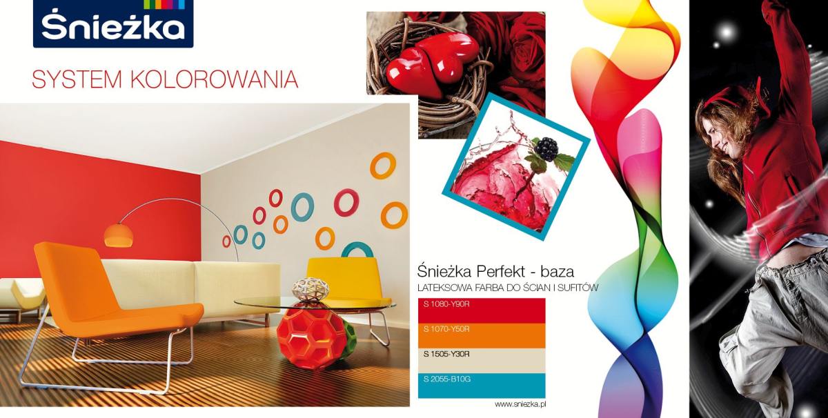 Alegerea culorilor în amenajările interioarelor, are o mare importanță pentru a ne induce o stare de bine. Jocul liber de a alege culorile, în care singura barieră este doar limita imaginației, îl putem realiza prin utilizarea bogatei colecții de culori a vopselelor Śnieżka Perfekt. Vopseaua poate fi nuanțată în sistemul computerizat Śnieżka în peste 2000 de culori. Acest lucru, ne permite crearea interioarelor mult dorite, care vor exprima foarte bine emoțiile adormite în noi.